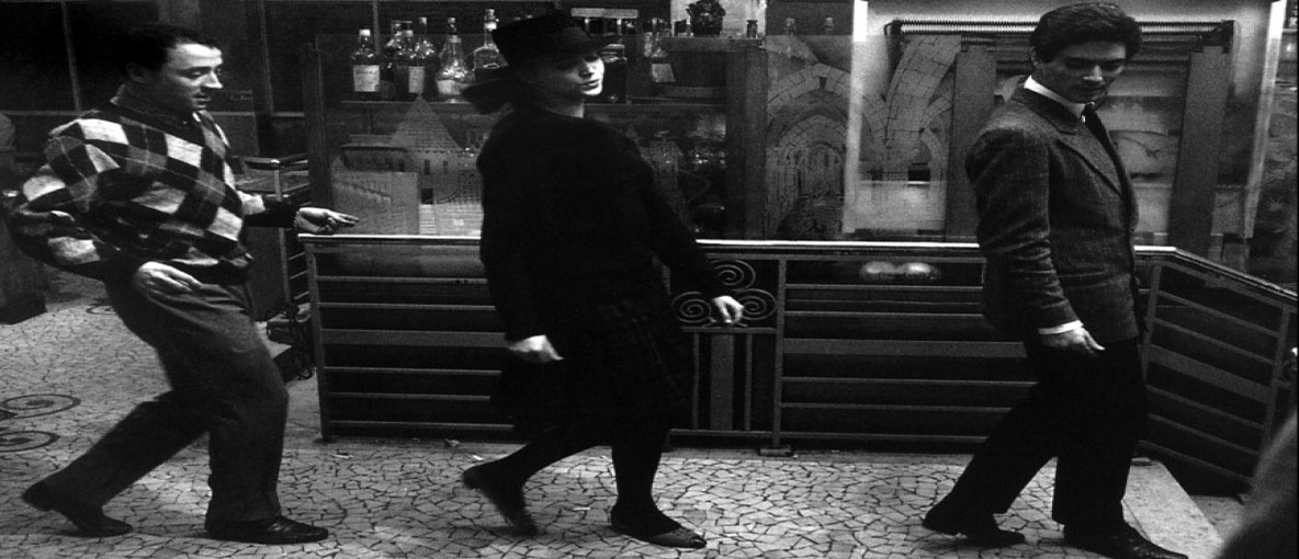 In his 1964 film Bande à Part, he plays a similar trick as in Une Femme Est Une Femme, but at a more obviously controlled level. The three characters are in a bar after planning a robbery. One of them has put on a record of some dance jazz. In what seems to be an impromptu Madison dance, all three perform a routine to the music. This is not only unexpected but influential too with the likes of Quentin Tarantino quoting it as the inspiration for his famous dance scene in Pulp Fiction:
