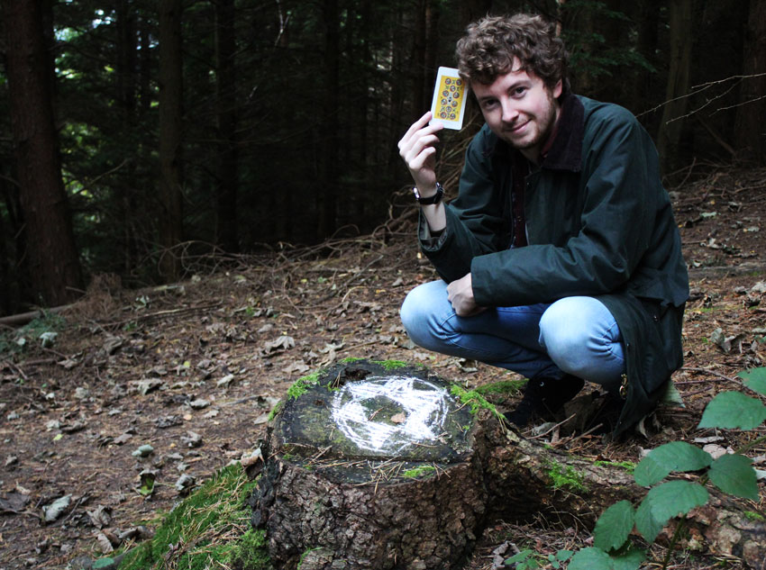 Filming Forest was in itself a challenge. It is the first film I’ve had to sit down and properly budget due to several aspects actually costing money, mainly the costume and special effects (which luckily I had learnt to use in previous years being a magician). It was filmed in North Wales in a very empty forest which only added to the atmosphere I was aiming to capture. This forest was, however, in the middle of nowhere meaning that getting there had to be taken into account too. Though it’s not a narrative piece of film (with its main aim to evoke Aleister Crowley themed hauntings whose words make up the soundtrack) there is a definite trajectory to it which I hope gives the viewers in a future gallery space an extra jolt in what would normally be a passive experience. I must also thank my poor girlfriend for putting up with the filming which she helped with a lot, though she was well paid in macaroni cheese at riverside restaurant in near-by Lllangollen.