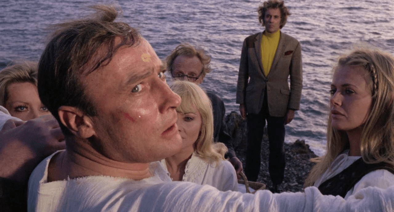 Even before Howie has arrived on the island, his very traditional and conservative Christian beliefs are deliberately made clear, later setting him at odds with the islanders. In the segment where Willow’s Song is performed, this religious belief is tested as the performance of the song by “the landlord’s daughter!” (Britt Ekland) is very earnestly meant as a ritualistic seduction song. Later on in the film, this moment is made the more poignant as, if Howie had indeed succumb to “the milking of a bull” (a clear metaphor for a sexual act), then he would not have been suitable for islanders’ purpose and would, in the end, not have been sacrificed in the wicker man.