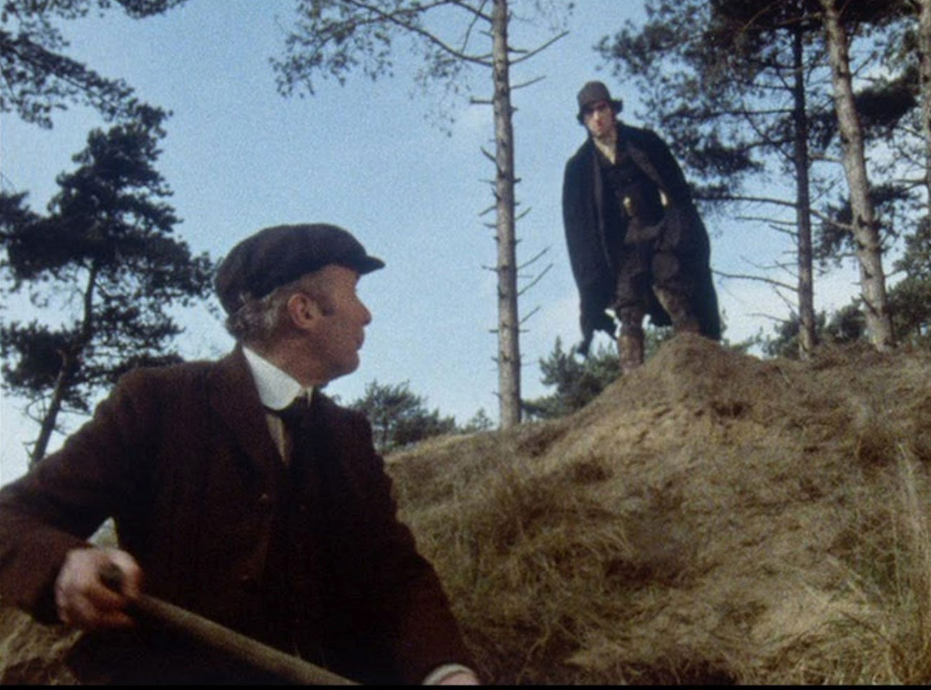 One of the most Jamesian of traits is to have characters interact with the rural landscape; their eventual haunting being a result of their curiosity and academic pursuit of something hidden under its earth. In all of the M.R. James adaptations by both Miller and Clark, the spirits and their objects have all in some way come from under the ground. The physical act of this tense unearthing in his narratives is given a stark emphasis that usually shows the male character’s desire and greed gradually overtaking their sense of personal worry and instinct towards danger. From the whistle in Whistle and I’ll Come To You, the crown in A Warning To The Curious, and the gold in The Treasure of Abbot Thomas, the ground is often the last barrier between the character and their ghost. The human interaction with the landscape is often an aurally striking moment in these narratives. Take, for example, the segment that opened this section from the original story of Oh, Whistle and I’ll Come To You, My Lad. As a writer, James took pleasure in setting up an aural contrast within the human interaction with the landscape as Parkins “rattled and clashed” his way along the coastline even though the going was “good and quiet” (1931).