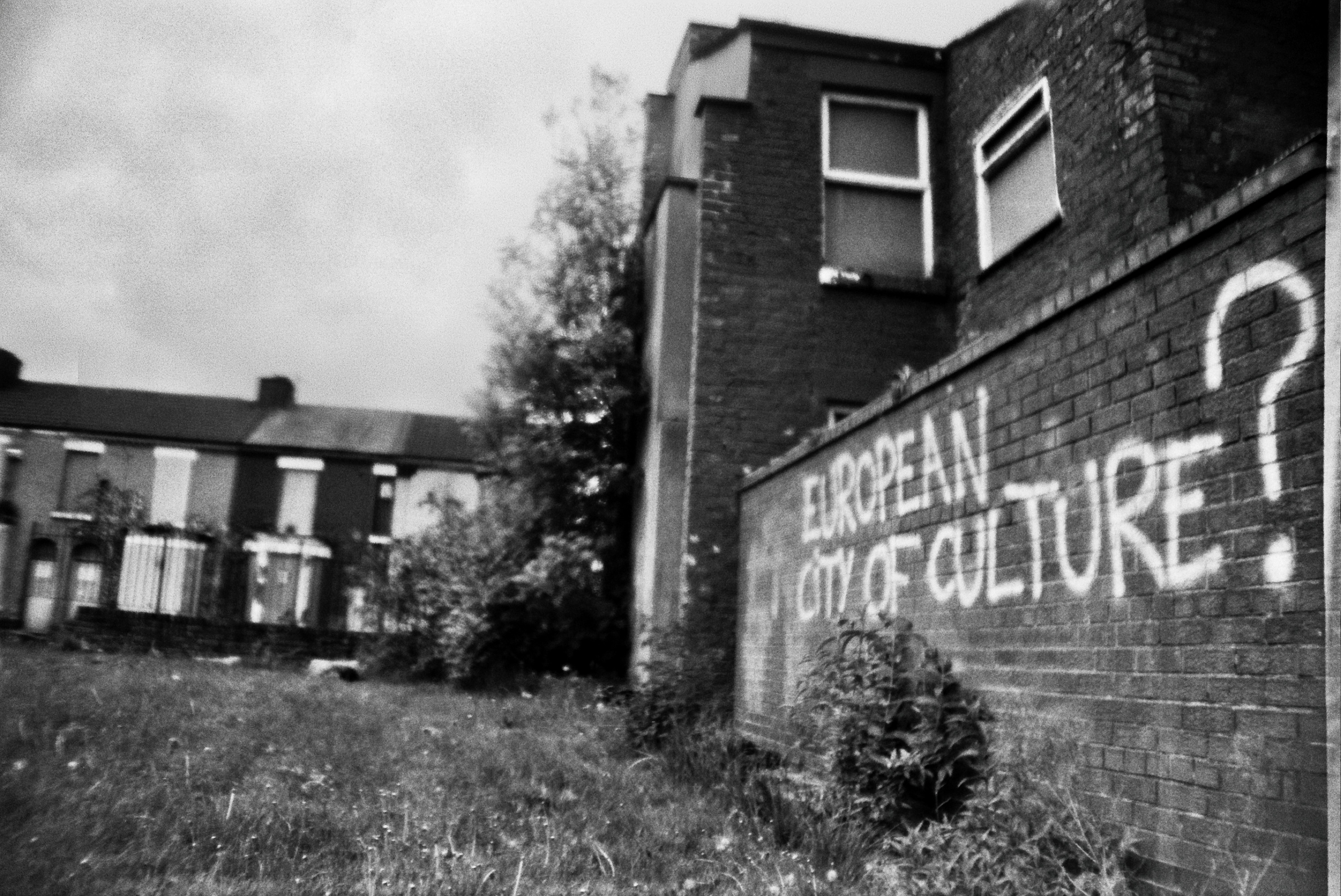 For example, behind one of the empty streets in which I filmed and took 35mm stills lie the “Granby 4 streets” project that is up for the Turner Prize this year whilst the empty docks and warehouses in the film played host to this year’s Sound City festival. The docks are also home to some of the new project spaces being made by the artists and people behind Mellomello and The Kazimier. No doubt Stanley Docks in particular will flourish into a varied and exciting space in the coming years if allowed. They are proof positive that spaces can be redeveloped in different ways outside of the student flat model currently being enforced upon almost every spare corner of the main centre.