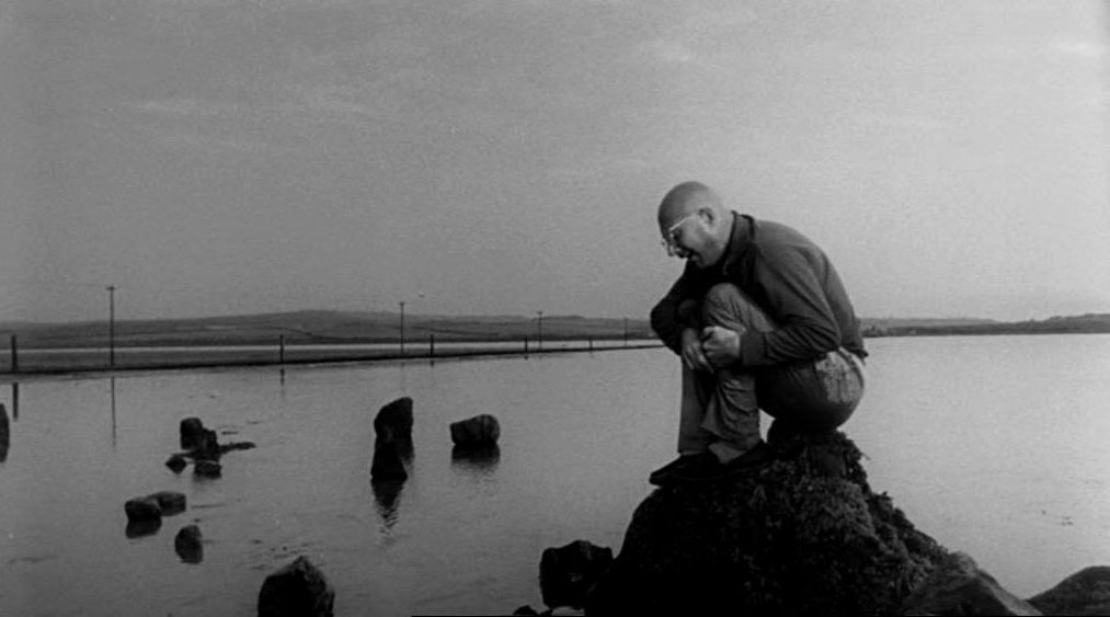 Before the castle was first built in the 11th century, the island was said to have been “…sacked by Danish raiders in AD 875, an event which was said to be preceded by storms and fiery serpents flying through the sky.” (1977, p.349). Aptly, George seems to go through his own siege, physically and mentally. The natural barriers of his home work against him as he and his wife become trapped with unwelcome guests of both the dangerous and the frustrating kind (a theme that Polanski would further explore variously in Rosemary’s Baby (1968) and The Tenant (1976)). After the drama has peaked and George has been driven to the murder of the surviving gangster, he himself falls to the siege and is left broken down in the foetal position, sitting on a rock within the vast surroundings of the landscape. The act of the gangsters arriving could easily be read as being akin to the storms of the folklore and the final transition from neurotic eccentric to psychotic murderer could be likened to the Danish plundering alas without any conceivable winner.
