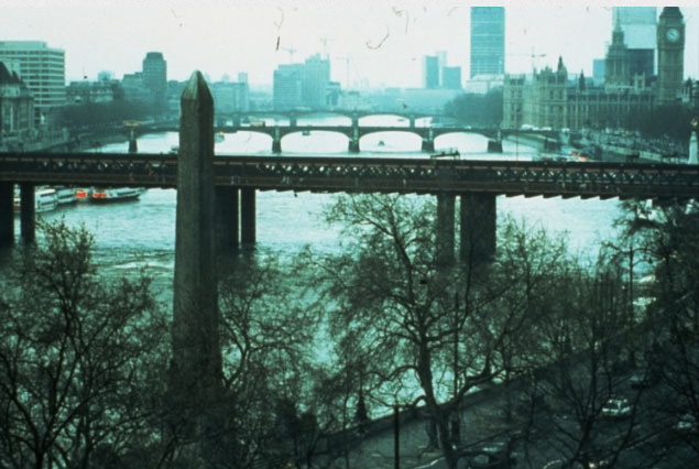 Ultimately, London‘s stillness presents a dynamic that automatically frames the impulses of the city with an almost autopsy-like division. Whereas a filmmaker like Ozu uses such stillness to channel transcendental ideals of Zen calmness and acceptance, Keiller uses the same patience as a quiet protest of journey where his camera is juxtaposed in its nature to just about everybody and everything around it, even if such kinetcism is ultimately causing the literal topographical and sociological entropy all around. Keiller himself suggests in an interview with Patrick Wright that “London was a project which aimed to change the experience of its subject…” (1998, p.14) and the idea is fully formed by such an aesthetic choice; the stillness in reflection of the political stasis of the place as it literally haemorrhages decrepitude in a dangerous period of social purgatory.