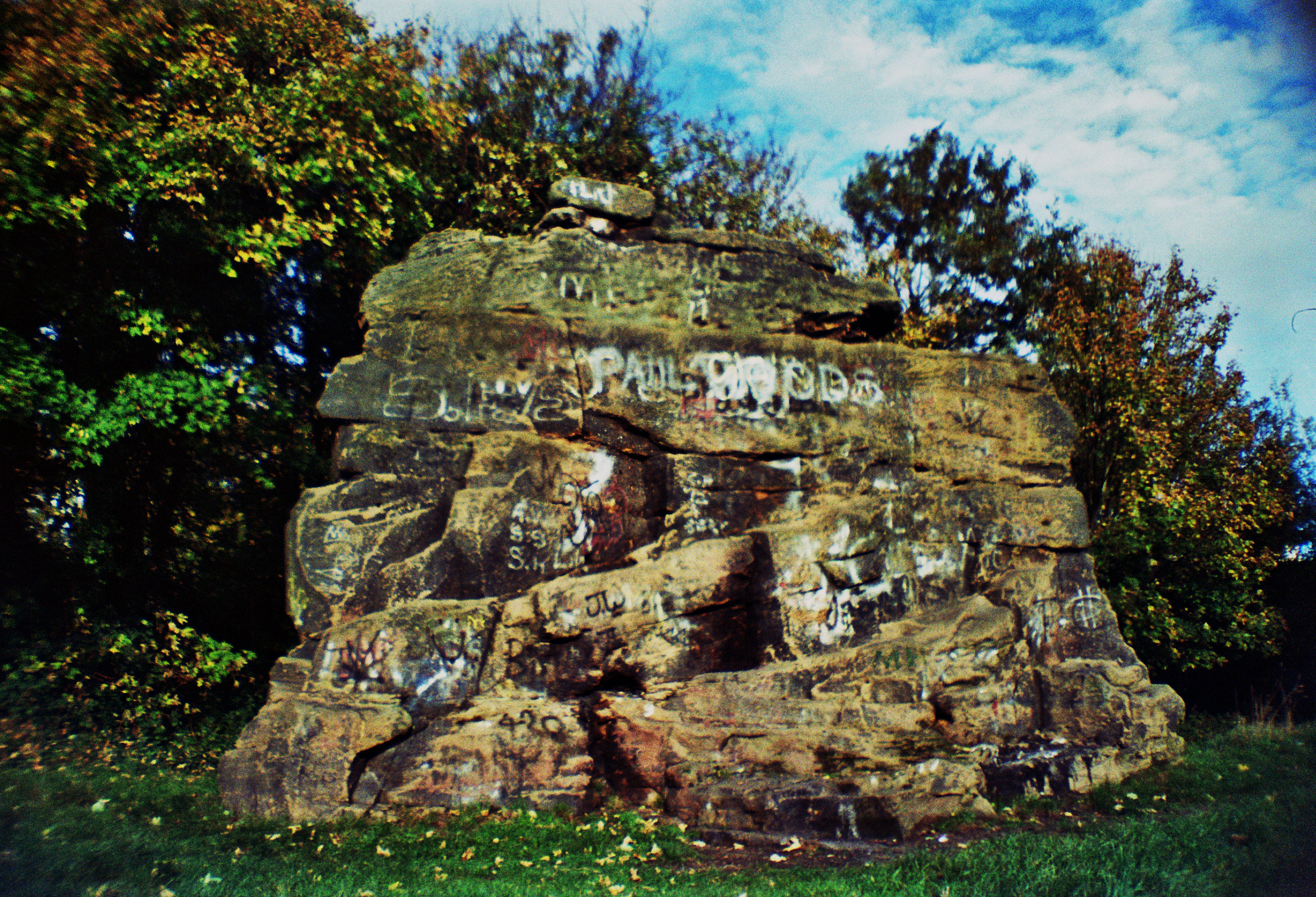 For, as will be seen in the film, The Breck does have its own strange menhir, known as Grannies Rock; perhaps menhir is a little too polite a term for Grannies Rock whose origin is somewhat puzzling and character far more punk than the polite hippiness of its Wiltshire cousins. The Breck itself was a sandstone quarry, mined for its stone which was partly used as the bedrock for the coastal road of Leasowe a brief detour down the coast. The mining has lead to a wealth of rock faces, some of which the climber Alan Rouse is purported to have practiced his early climbing techniques on and perhaps even fellow Birkenheader and Everest victim Andrew Irvine could have potentially visited the place to climb as well. Having climbed the graffitied face of Grannies Rock a number of times when little, I stopped when being told a strange story about the rock. There’s some debate as to whether the rock was simply left to stand because the stone was particularly hard or whether it was actually a block used to support one of the mining cranes itself. But the story had nothing to do with that. Instead I was told that a young man had hung himself from a nearby tree, using the stone as a platform. The folklore goes that on certain nights, if climbing the rock with a particular arrogance, his body can still be seen hanging and screaming the words “get down”. Whether this was simply a tale to stop us climbing the, admittedly dangerous, obstacle is debatable but it was my own first encounter with a very particular type of folklore; one that mixed with the horrific. For someone whose chief subject of writing is Folk Horror, this is an essential starting point.