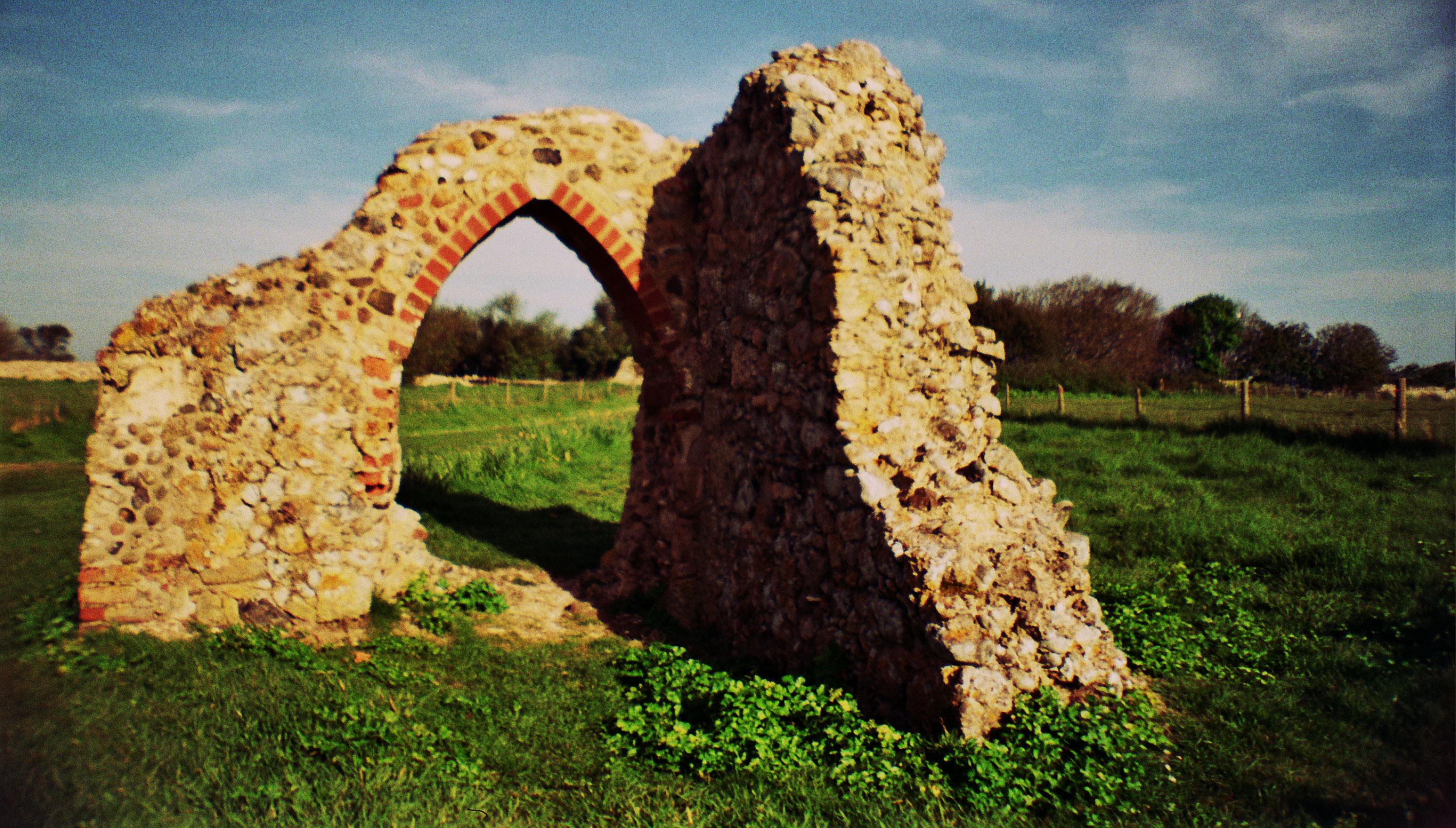 This is one of the last buildings left standing from the original area of Dunwich, appropriately crumbling itself and now an open ruin with a few fields either side. Sebald again came to mind, a ruin acting as an aleph of both past and future calamities. ‘Dunwich,’ he suggested, ‘with its towers and many thousand souls, has dissolved into water, sand and thin air.’ Of even more prescience was the so-called last grave; a gravestone standing on the very precipice of the cliff where once a full graveyard stood. A few more dogged winters will eventually drag it down into the sea though hopefully not before a respected antiquarian has had excavate a whistle from its fallen structure.