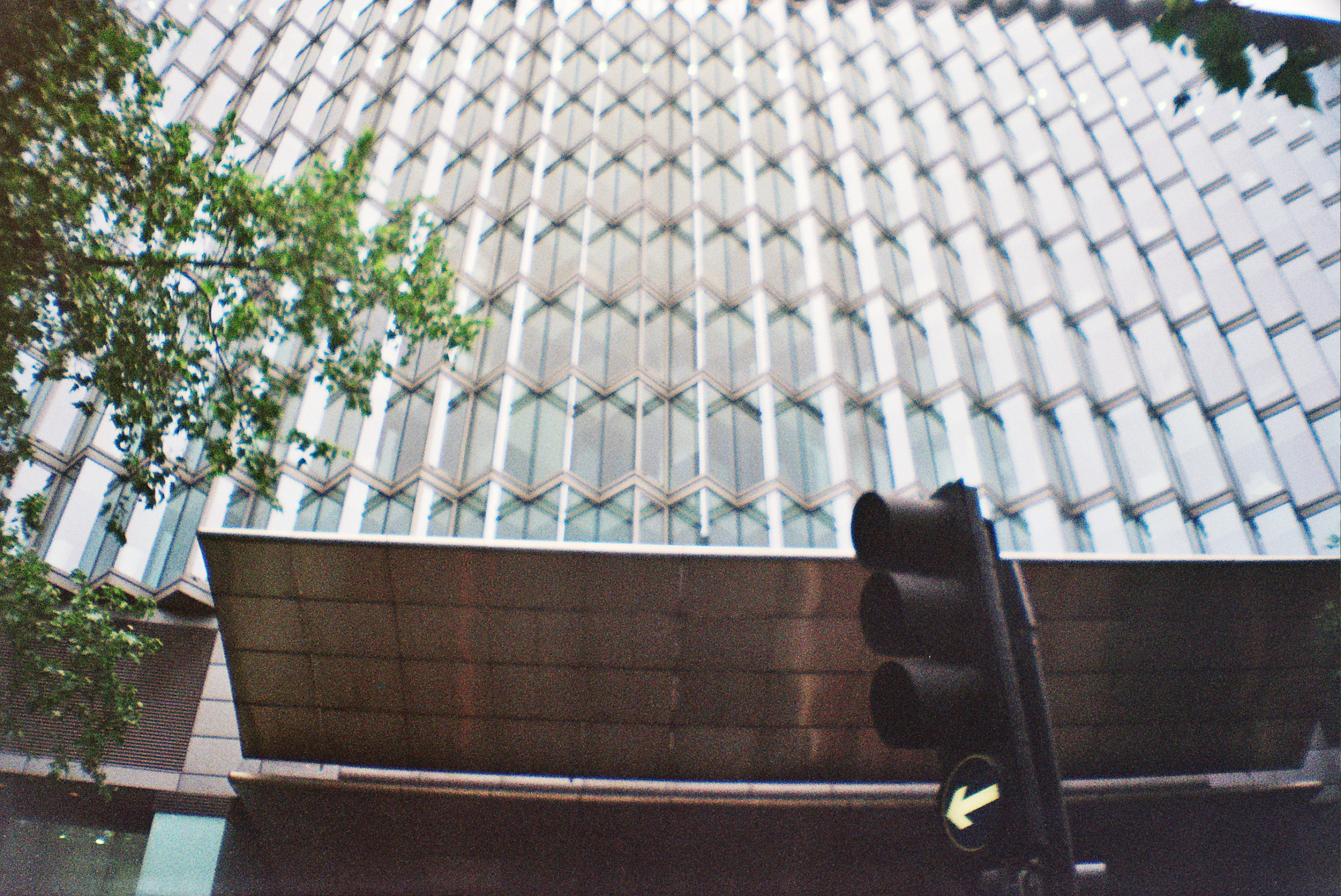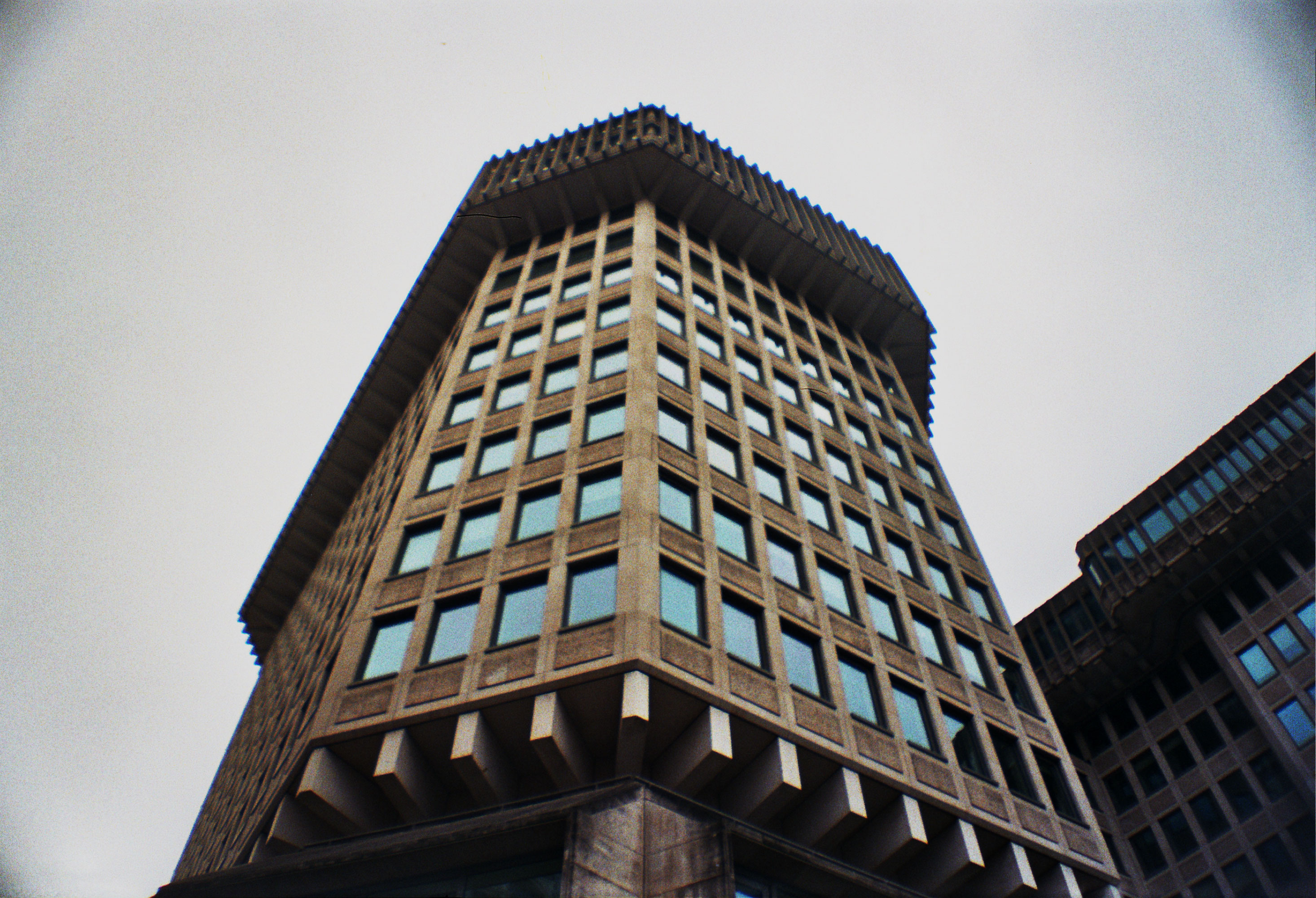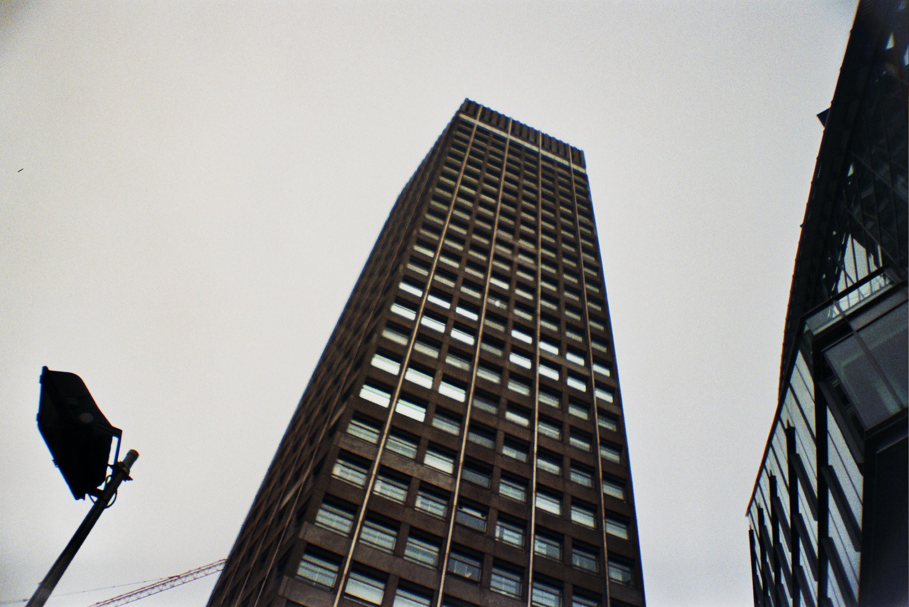 Back around to Victoria Street, the bustle became apparent again. This steady stream of people was accompanied by such a volume of new builds made of glass as to almost give the impression of walking around a giant kitchenware shop. The propensity for overly glass-fronted buildings in central London is an unnerving one; a choice designed to create a light and to give a sense of openness but actually one that simply creates a vague distance and ambiguity as to what these spaces are actually for. They instead seem alien and suspicious. The Cardinal Walk shopping arcade, only partly finished at this point, is typical of this; high-end shops in a space almost entirely conceptual rather than actual (a phrase I increasingly use when describing London new-builds). This sense is broken enjoyably by another post-war development that Nairn spots; Portland House. Rising out of this spineless sea of glass and steel is this concrete monster, looming over its weak neighbours like a late-night mugger squaring up to a shy undergraduate student. Nairn wasn’t quite so keen on this building as I was but saw that same contrast rising up even when the buildings around it were still of a typical post-war character: