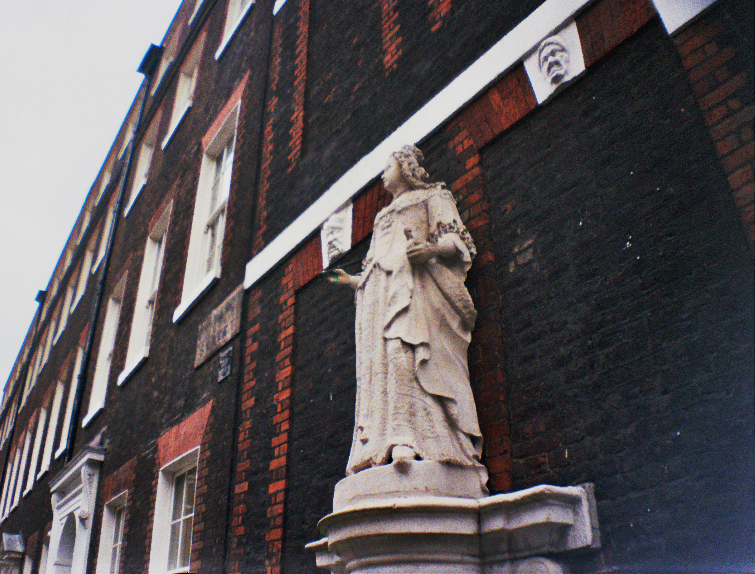 Queen Anne’s Gate itself is overrated: it is a complete eighteenth-century street with some jolly porches, but nothing more, except an oasis in a pretty grinding part of Westminster. Queen Anne herself, however, on a pedestal next to No.13, is a perfect official statue, full of generalized queenly virtues yet still a recognizable and attractive person, stepping out into life with just enough English straightforwardness. (1966, p.62).