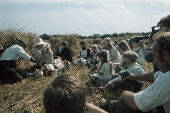 By amalgamating such ideas of Ewart Evans’, along with Blythe’s and Larkin’s, Gladwell produces such an augmentation of reality that the film seems to be more of a subjectivist avant-garde work rather than a purely objectivist ethnographic documentary such as Ewart Evans’ work. Yet, with such a range of influences going into the melting pot, Requiem can’t help but directly comment on such similar social and topographical changes even when questioning such changes through some of the most hauntingly eerie and disturbing visuals produced in the whole of 1970s British cinema. The film is perhaps most infamous for an extended montage of sexual assault, slipping in its perception between the motorbike gang and the workers of the land, both forcing themselves upon various women. The sequence is almost dreamlike and is the most overt that is arguably channelling the side-ways tipping of reality, essential to the concept of rurality. Gladwell suggests that this mixture of reality and fantasy (i.e. the mixture needed for such an argument of rurality to be applied) ties the former aspect to his own life in the countryside, writing “It could be used as a metaphor within a semi-documentary story relating past with present generations of rural life. The documentary aspect took over from the fantasy, and in a rural setting because I grew up in the countryside and have always felt an affinity with it.” (2011). It is fitting that Gladwell still lives there today, producing many works in the form of painting but still addressing the same issues of countryside, rural practices and the darker hues of the fantastical.