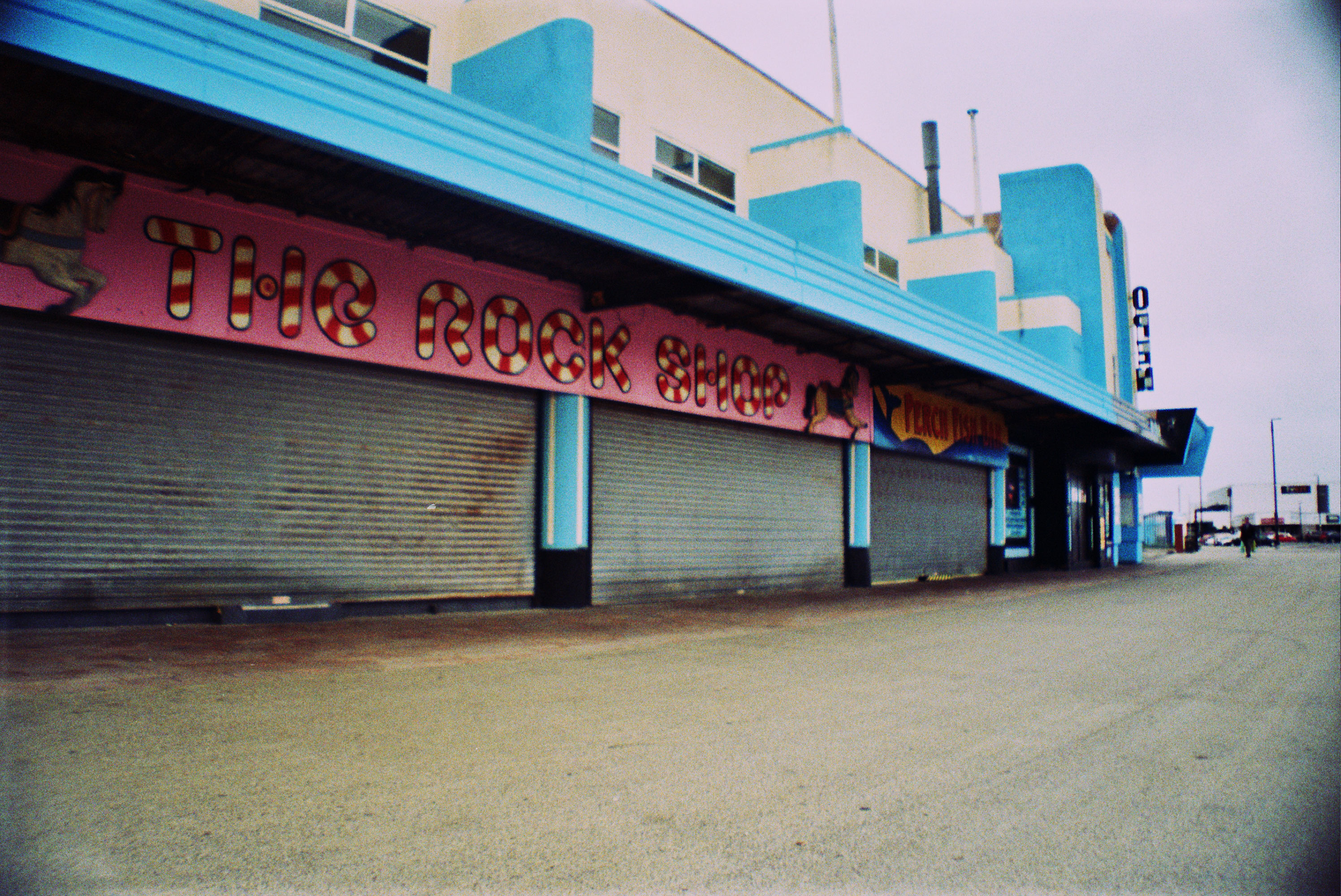 On saying this, the marina pool was a no-go for swimming and really still is. Parr’s pictures caught several moments of locals taking dips but it was ill-advised; the pool had its first proper drainage clean when the other half of it was being filled in for the shopping centre this decade. I have strange memories of taking a canoeing course there for a friend’s birthday, being made to “kiss the end of the canoe” as a typical challenge and then being violently ill for several days afterwards. The marina was of course empty on the day of my walk aside from the gulls. I’d rather have the reality of Parr’s pictures – a vibrant and character-filled working class using a local space – to the reality of the tidied vision of today: the working class sold off to the cheap ideal of the “Marino Lounge”, the Starbucks and the Morrison’s. I was quickly bored of looking back at this so crossed the road to the other side and to the arcades. A flood of memories and captures of these arcades came back. In Parr’s work, they are the place of the rammed fish and chip shops. In The Magnet, a young James Fox wanders into these by accident to avoid a copper.