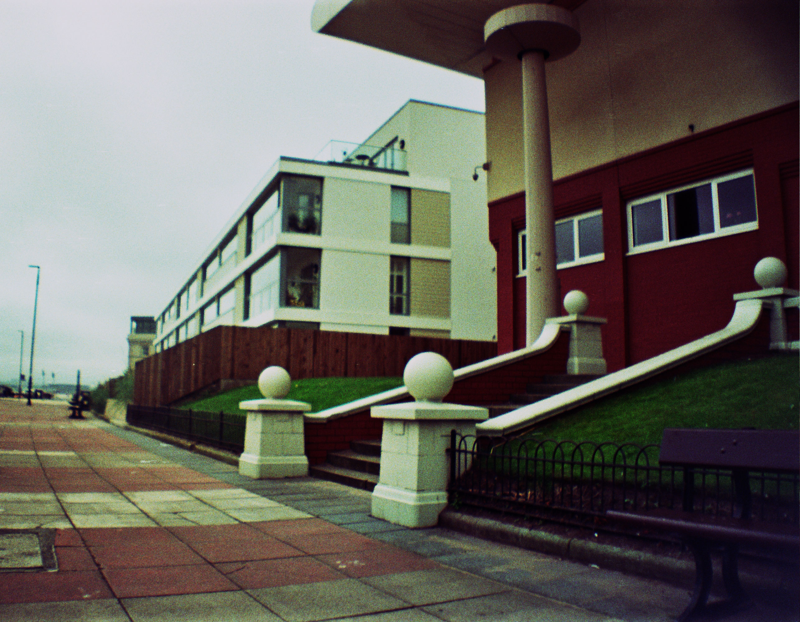 Alien buildings sprung up, pathways designed to invite walkers whilst making them paranoid about their purchase on the landscape; why walk on the beach when a Morrison’s beckons? Up until a flood in 1990, what sat here was the last of the New Brighton pools, a perfectly stable art deco building that was used right up to when it was unnecessarily demolished after the flood. This is the pool where, in The Magnet, there are the various bathing contests and awarding for the money accidentally raised by the selling of the magnet. Watching the footage of the huge amount of people gathered in this place for something as simple as a swim and a socialise is as far removed from the space today as any socio-topographical contrasts that I’ve ever seen. It’s a dead-space now, even the sort of Super-Cannes actions of cathartic releases of violence seem inconceivable; it’s even too boring for that. This is in spite of various worried wanderings here as a teenager down various nearby streets coming to mind, worried butterflies rising as groups of lads in hoods blocked the streets deliberately – “Got 20p lad?”. There was even a set of make-shift jumps for bikes on the land before this was built, a far more honest reaction to the space at the very least.