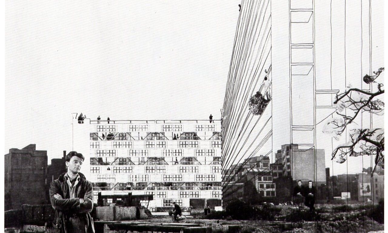 Alison and Peter Smithson are two of the most influential architects of the 20th century. This is in spite of the fact that only several of their buildings made it past the design stage and that, of those that did in the UK at least, they have often been reviled as the most grim of Brutalist designs. Yet, apart from their buildings standing out for their confident, if occasionally misplaced, solidity, the pair’s initial designs are in themselves a wonderful evocation of a past’s vision of future living. Within these designs, there’s a true sense of discarding excessive flourishes of almost all past architectural movements in favour of addressing the heart of the 20th century’s architectural problem; that of the dramatic increase in volume of the population and their need for housing. Almost every facet of their designs succumbs to this problem, streamlining any design aspect to address the, almost compulsory, shared living spaces required in post-war Europe. The collage works that were put together to sell these ideas, therefore, are some of the most telling and modern of any visual artwork made during the period simply because the issue has, if anything, worsened as time has gone on.