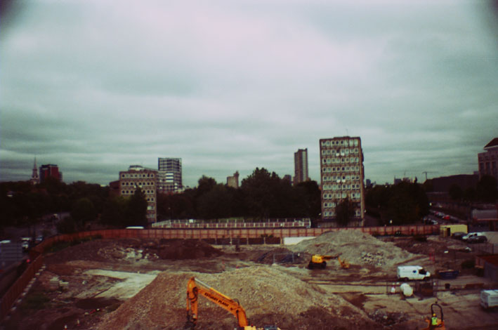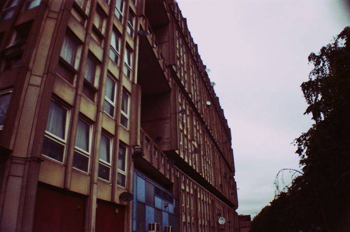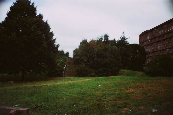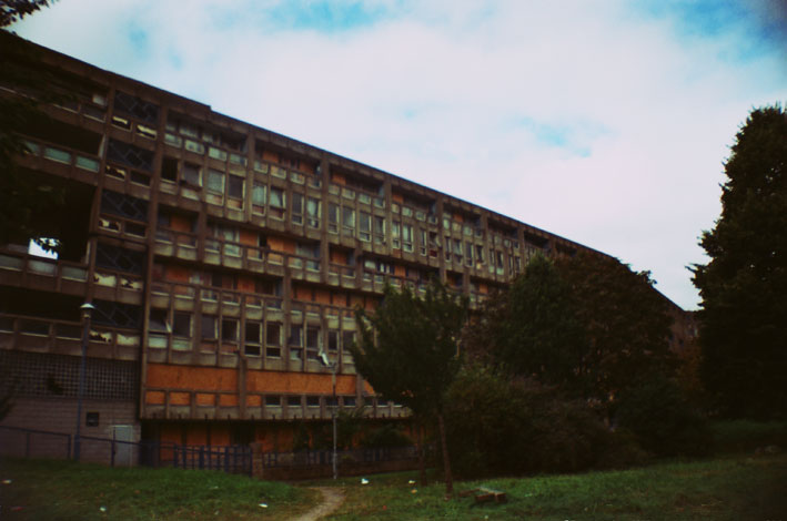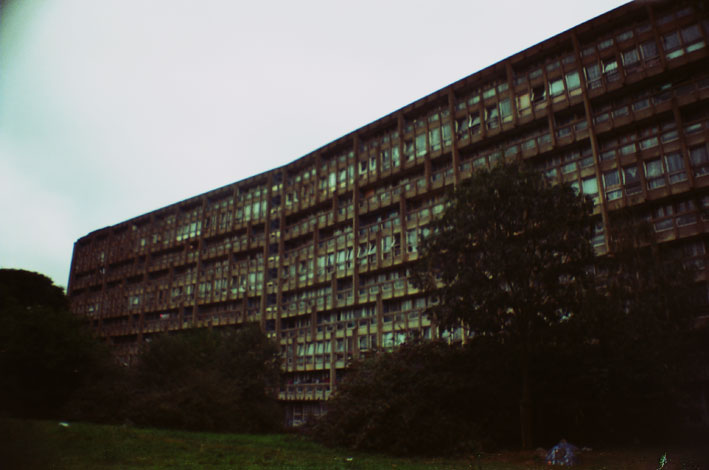 Later, I travelled east to the infamous Robin Hood Gardens project at Blackwell; probably the pair’s biggest development and one of the bastions that often is used to criticise the Brutalist movement as a whole. The site has had a schizophrenic history of late, being on the end of several planning arguments, either to redevelop it or to knock it to the ground (which is still supposedly meant to be occurring though has yet to begin in spite of being decided in 2012). Walking around this odd building today – a huge cacophony of straight lines and cubes, heavy material weighing down upon each other – its outer wall feels almost prison like. In comparison to the designs, the realisation is harsh, even less peopled than the empty collages of the pair though that particular reality will no doubt be well realised by the adjacent and ironic luxury development opposite it which screams of being an investment opportunity more than a space to live in. As a final hurrah, I walked its perimeter only to find the building engulfing everything around it, akin to a gravitational pull. The sun was blotted out, the objects were in conflict and the new dreams of a past future had dissipated into the crumbling concrete.