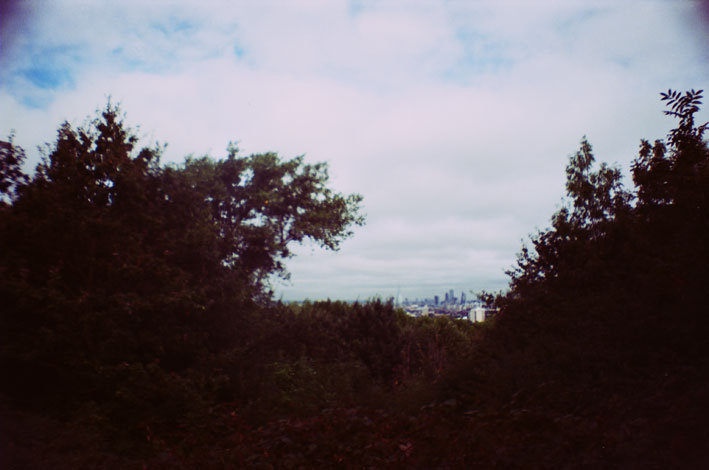 It is undoubtedly the most interesting spot on the walk. Before ascending the hill, I walked up another road and found a beautiful contrast between a clearly ancient cottage and a brutalist block of flats; such is the character of the place. In fact, when later reading M. John Harrison’s strange and disturbing novel The Course of the Heart (1992), it was this location that came to mind as the setting the book’s horrifying attempted ritual. I walked up the leafy hill path, finally to see the view out of One Tree Hill over the entire city.
