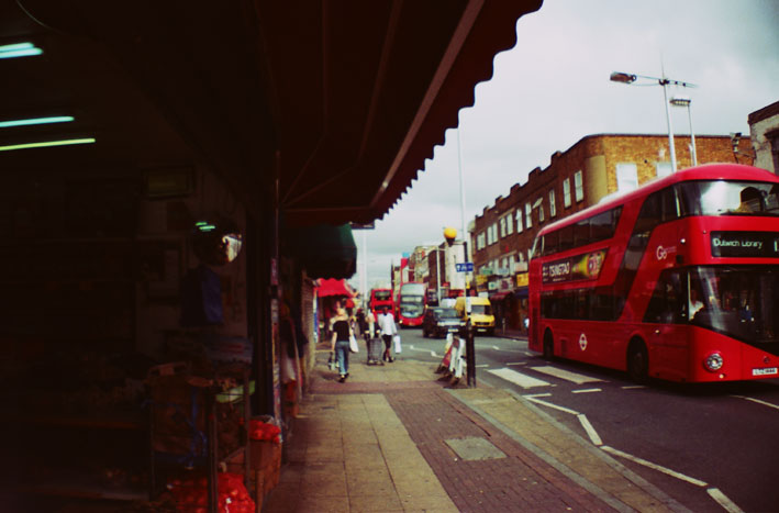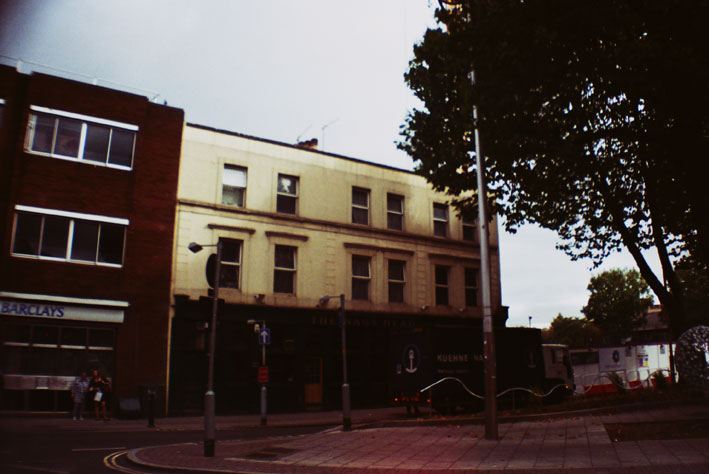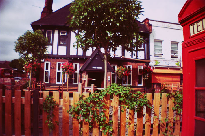 The Heaton Arms was demolished and The Harbinger appears to be fictional, perhaps derived from a pub further north in Camberwell Green. Yet The White Horse mentioned is still there and escaping the bustle of the high street on the right brings you directly to this impossibly English-looking pub. Seemingly picked up from a small country village and put down right in the centre of Peckham, it stands out surreally, perhaps because it is directly opposite an impressively ambitious graffiti mural on a corner shop wall.