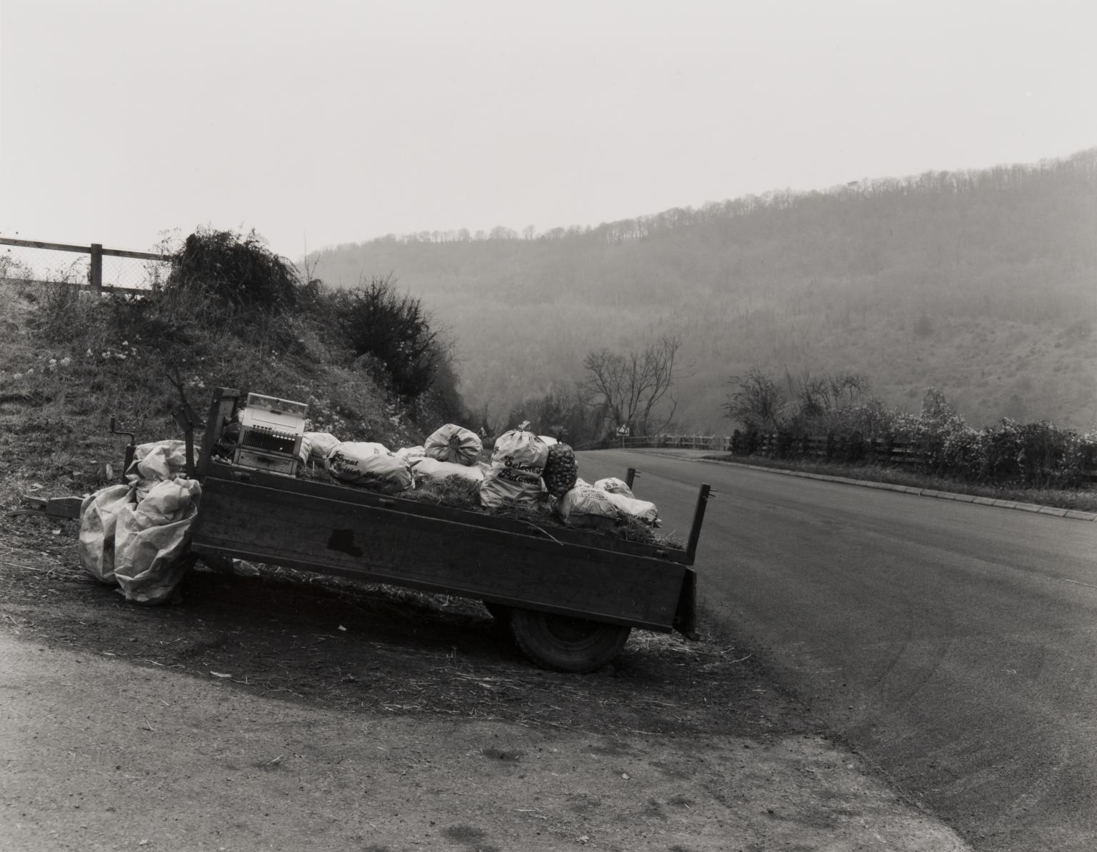 This is, of course, entirely dependent on the type of photo that Arnatt is taking. The former question arises in such photos as the beautiful composition of a typical country lane (a typical image of general rural landscape art), where human presence seems intrude upon the image of a rural climb through the presence of a collection of steel rubbish bins. This is a reality of rural environments that many artists throughout the years have sought to conceal behind a curtain of whimsy; the slightest sign of messiness and toil being shrouded or removed entirely. Arnatt seems to suggest that such evidence of a landscape being lived in shouldn’t necessarily be seen as a bad thing, aside from when such evidence begins to encroach upon the other inhabitants of that environment (a theme he would address in other similar works, especially in Miss Gracie’s Lane). This comes over the surprising backdrop of a dismantling of the concept of a society through Thatcherism, and Arnatt reflects wonderfully the sort of environmental implication of a society brutalising itself; where vistas portrayed as pure or unsullied are beyond comprehension in 1982. This is even more alarming when considering that Thatcher’s own environmental policies, while being generally inane, were vibrantly green for the period in question. Are these landscapes all that was left for a the crumbling optimism of the general populace of the era? The point is that landscapes had already been reverting to such a state at the very least in the previous 100 years, if not already strewn with material during the industrial revolution of the previous century.