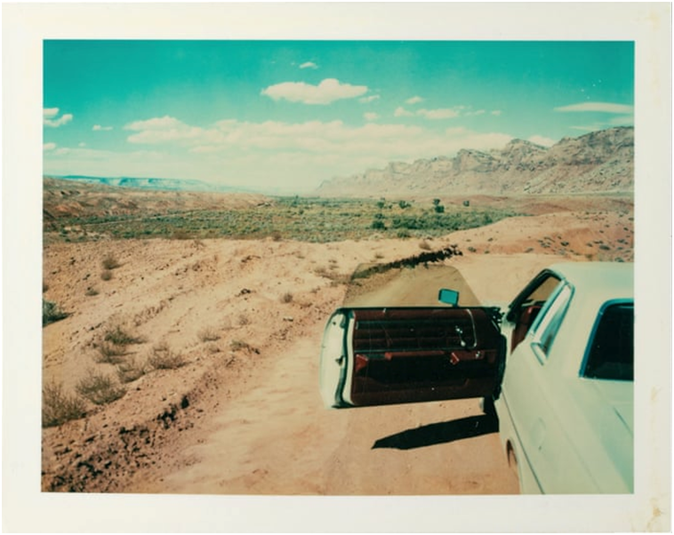 Evans’ own Polaroid photos, perhaps the most celebrated by a high-end artist outside of Andy Warhol’s work, attest to a greater complexity. His images explore travel and the melancholy fernweh of a wanderer searching for the unknown. It is likely that the highly saturated colours that define the Polaroid on the public consciousness – dripping with highway sweat and blinding blue skies – have largely come from widely shared images by Evans, taken on his favourite toy.