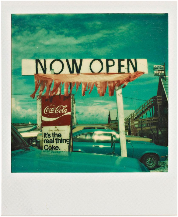 It is understandable why Evans’ style of imagery would fit a novel like Americana; a melancholy story of another lonely man, travelling to the mid-west in the 1970s to document it only to find the absence he was looking for was carried within him all along. His loss was pre-ordained before he took his first step. One line stands out: ‘Such is the prestige of the camera, it’s almost a religious authority.’ I see Evans’ photography within this description. It lifts mundane subjects to the state of something transcendent. As the Polaroid produces a physical object, this feeling for me is heightened, as if producing a holy relic devout in its worship to the deities of Coca-Cola and Ford Motors.