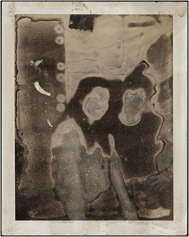 In another Polaroid, this distortion becomes extreme to the point where the figures in the photo become little more than shadows of whirls that once were. Faces are voids where personalities once existed. Bodies have melted into the background. All has become shade and shadow.
