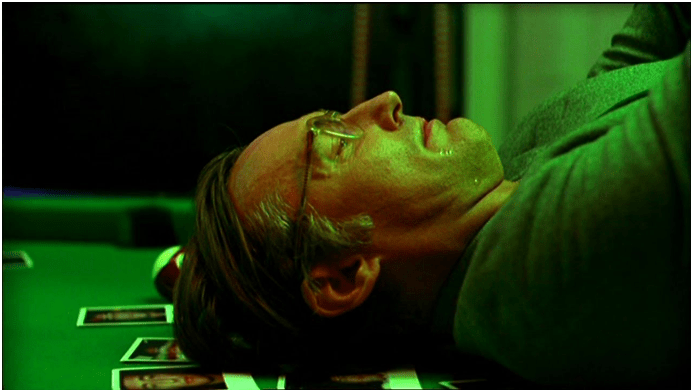 Ripley seems to be seeking confirmation of his own identity, his clearly dubious morals having hollowed him out over the years. He couldn’t have chosen a worse way to re-establish his sense of self. Like my deathly Polaroid – taken in pretty much the same fashion, even stretching into similar positions in order to find how best to capture my face on that awful afternoon – it reveals precisely what we don’t want to see.