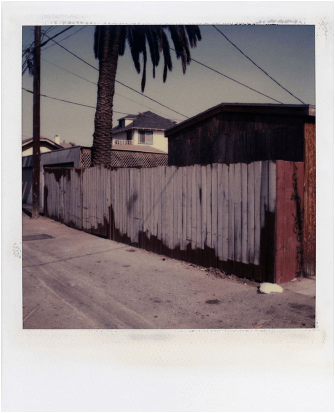 In the most unusual photos of series, even the graffiti is absent. One photo in particular stands out, if only for its suspiciously innocuous character. The Polaroid is of a back-alley between some ramshackle East Los Angeles housing. There’s no graffiti or sign of anything vaguely communal – it looks abandoned – which begs the question of what Hopper saw.