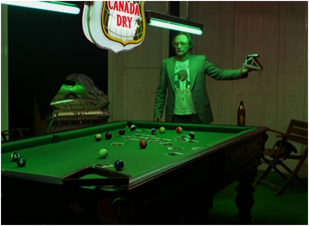 A man is stood in a pool hall. He’s surveying the green baize landscape as he drinks. Should he bother with the game anymore? The light has a medicinal quality, emanating with an annoying buzz from a long halogen strip above the table, proudly advertising Canada Dry ginger beer. It could be a lonely portrait by Walker Evans or William Eggleston, perhaps even an Edward Hopper painting.