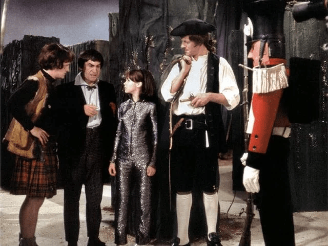 Other culture took this to even greater literal heights. Patrick Troughton’s era of Doctor Who is full of superb examples. In the final story of his first season, The Evil of the Daleks (1967), swinging sixties London is eventually connected to a Victorian manor house invaded by Daleks. There are a number of aspects to discuss with this, though the story is sadly missing from the archives bar the second episode and the audio. The first is that Dudley Simpson’s score has a similarly Magical Mystery Tour piano; slightly out of tune, reverbed, old world. This musical form becomes a kind of motif in the era more generally for its rendition of the past (like Death of a Clown by The Kinks). The other aspect to mention is the antiques shop in the episode. A whole separate article (coming later) could be devoted to the era’s wonderful and entertaining relationship with antiques shops; forever realms of strangeness, camp crime and even horror. Here, a Victorian out of time is transporting items from his own era to sell for huge sums of money. However, it’s simply a ruse to trap the Doctor (Troughton) and Jamie (Frazer Hines) so they can be kidnapped and taken back to the Victorian era for the Daleks’ evil purposes.