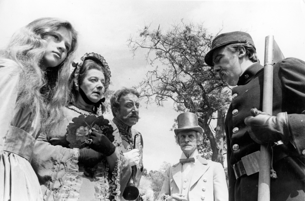 When Russell moved on from mere biopics to actual period adaptations, this became even more obvious. His adaptation of Women in Love (1969) is arguably the strongest example, before the strangeness of the decade’s obsession tipped all of these ideals sideways. Putting aside the latent eroticism on display, the real evidence of the kaleidoscopic past comes from the film’s opening segment when Gudrun (Glenda Jackson) and Ursula (Jennie Linden) are walking through their mining town to a wedding. The town is industrial and bleak, almost a perfect rendition of the earlier penchant for cobbly social realism. But the characters? They stick out a mile in their surreal, colourful attire, and they know it. Their clothes draw scorn from several women, but it’s really an expression of Russell and his period rather than uniquely D.H. Lawrence’s. It encapsulates perfectly the decade’s increasingly swinging view of the past. But things were about to turn even stranger.