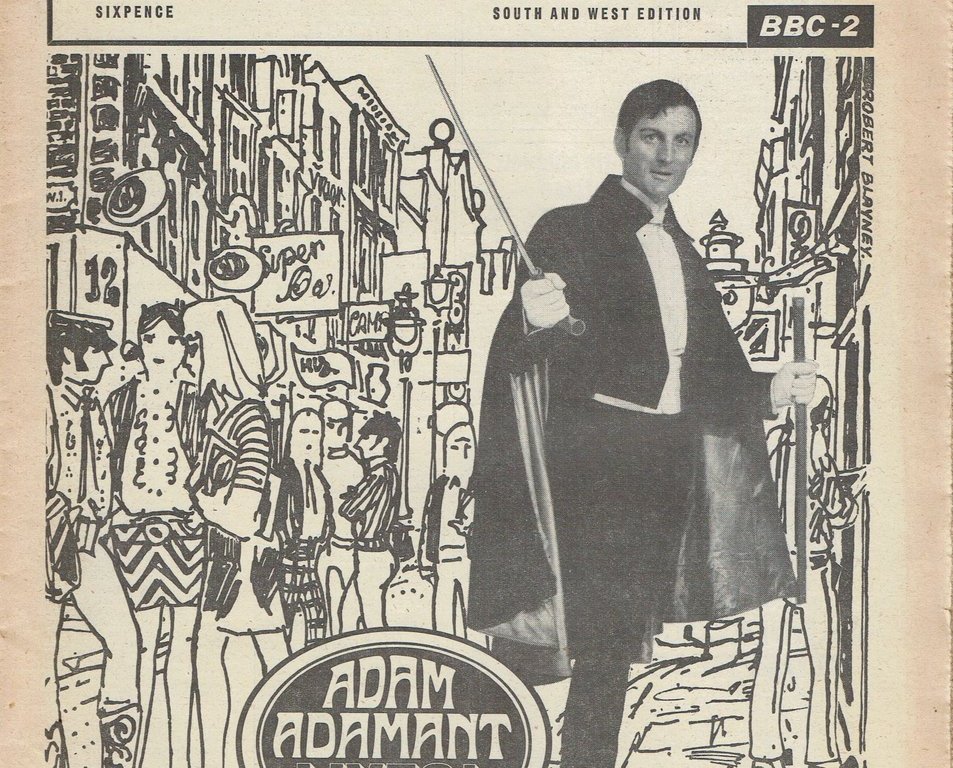 Adamant is a swashbuckling Victorian hero, transported forward to, as his sidekick Georgina (Julia Harmer) informs him early on, the “Swinging city”. Though he finds the morality of the place somewhat off kilter to his gentlemanly world of late Victorian London, it seems that he generally does fit in. In spite of not changing his outfit of nineteenth-century dinner-party attire, he doesn’t seem to attract much attention among a London teeming with Regency Mod and Peacock fops. Several promo photos show the character with the trademark sixties mini (he manages to live atop of a brutalist car park), while even general photos of the period show Harper in real life donning a kind of (beautiful) costumish attire for being out and about in the city. Even the programme’s logo has an essence of the past and present’s collusion (similar to The Kinks’ various typographies and stylings); both era’s seem about stylish adventure and attention-grabby dandyism.